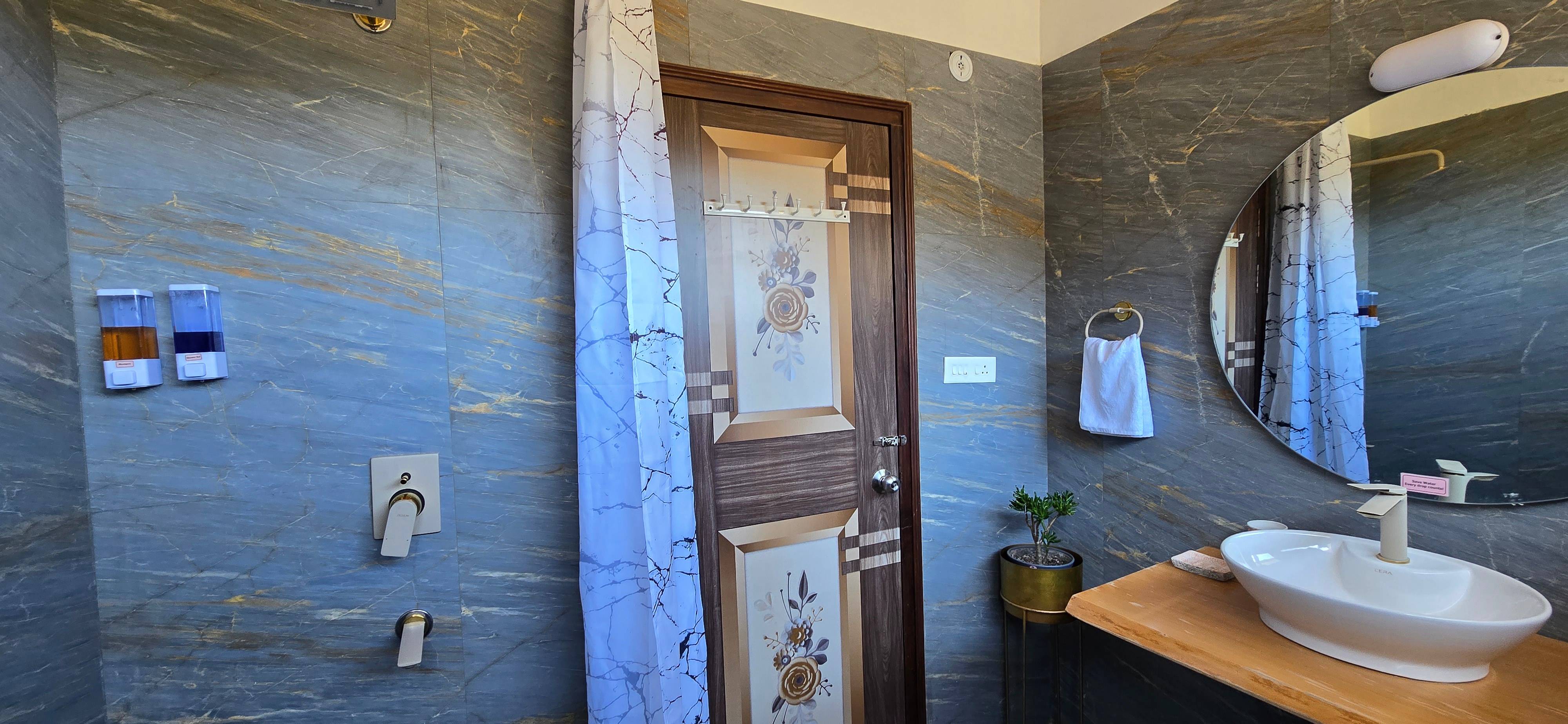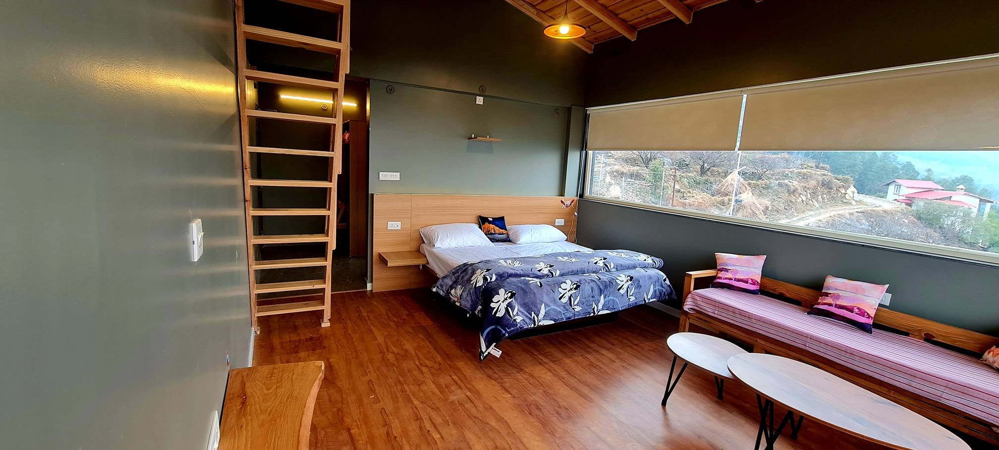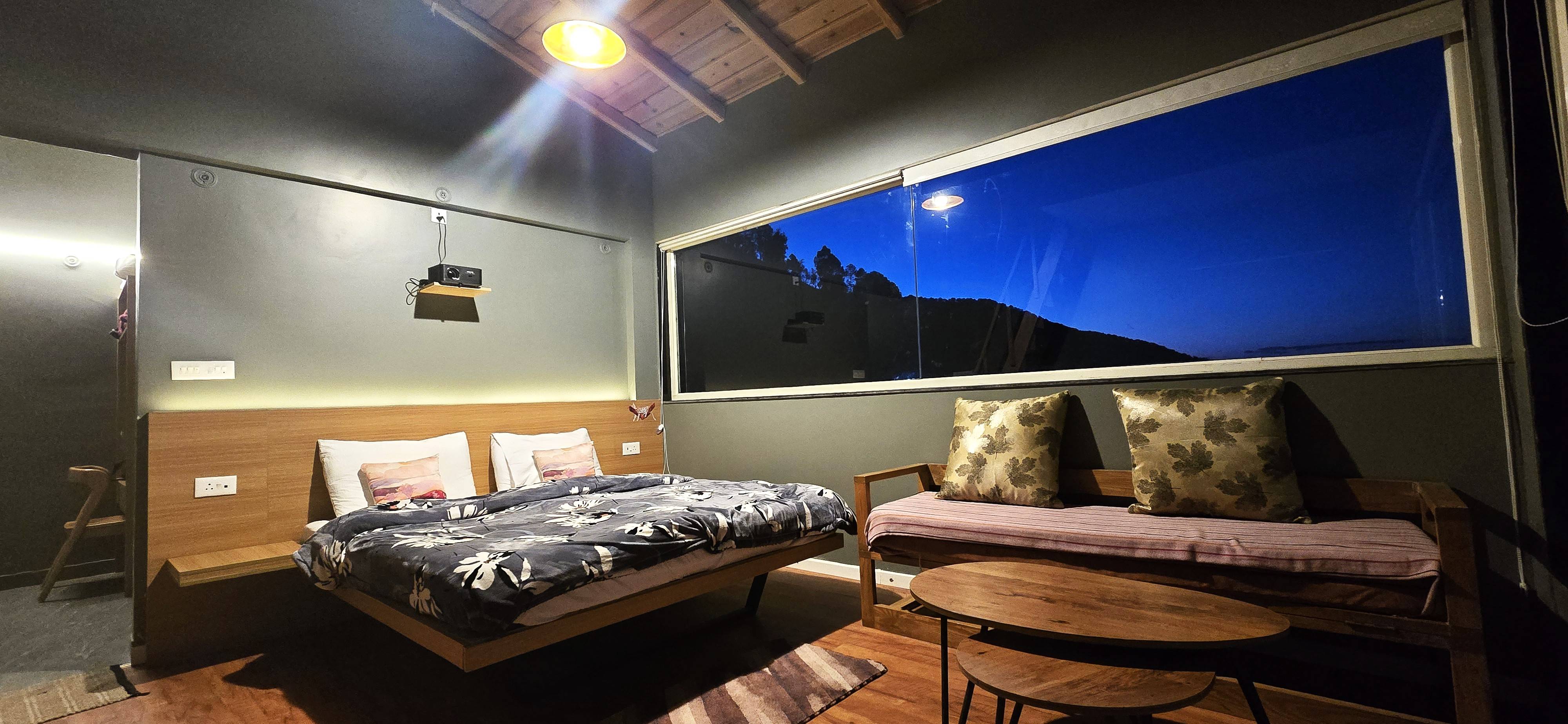With extra-large windows wrapping around the room, you can gaze at the starlit sky at night and wake up to breathtaking panoramic views of the valley and mountains during the day. Step onto your private balcony to soak in the serene beauty of nature, whether it’s the misty mornings, golden sunsets, or the crisp mountain air. This room offers the perfect blend of comfort, elegance, and nature’s splendor.
